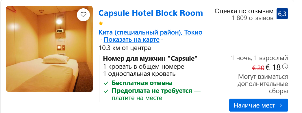 А вообще, у меня товарищь как-то не забукал отель заранее, пришлось ночевать именно в этом капсульном. Сказал, норм