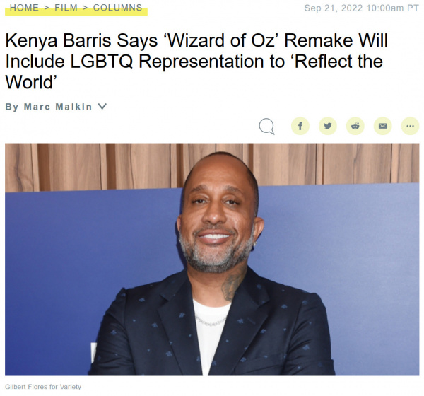 Кения Баррис рассказал, что представители ЛГБТК будут представлены в его ремейке "Волшебника страны Оз". "Оригинал был аллегорией и отражением того, каким был мир в то время с такими вещами, как Великая депрессия и Пыльный котёл", — говорит Баррис. "Теперь мы собираемся повернуть зеркало туда, где мы сейчас находимся, и взять разрозненных персонажей из ЛГБТК-сообщества, из разных культурных и социально-экономических сообществ, и рассказать историю, отражающую мир. Думаю, сейчас самое подходящее время для этого".