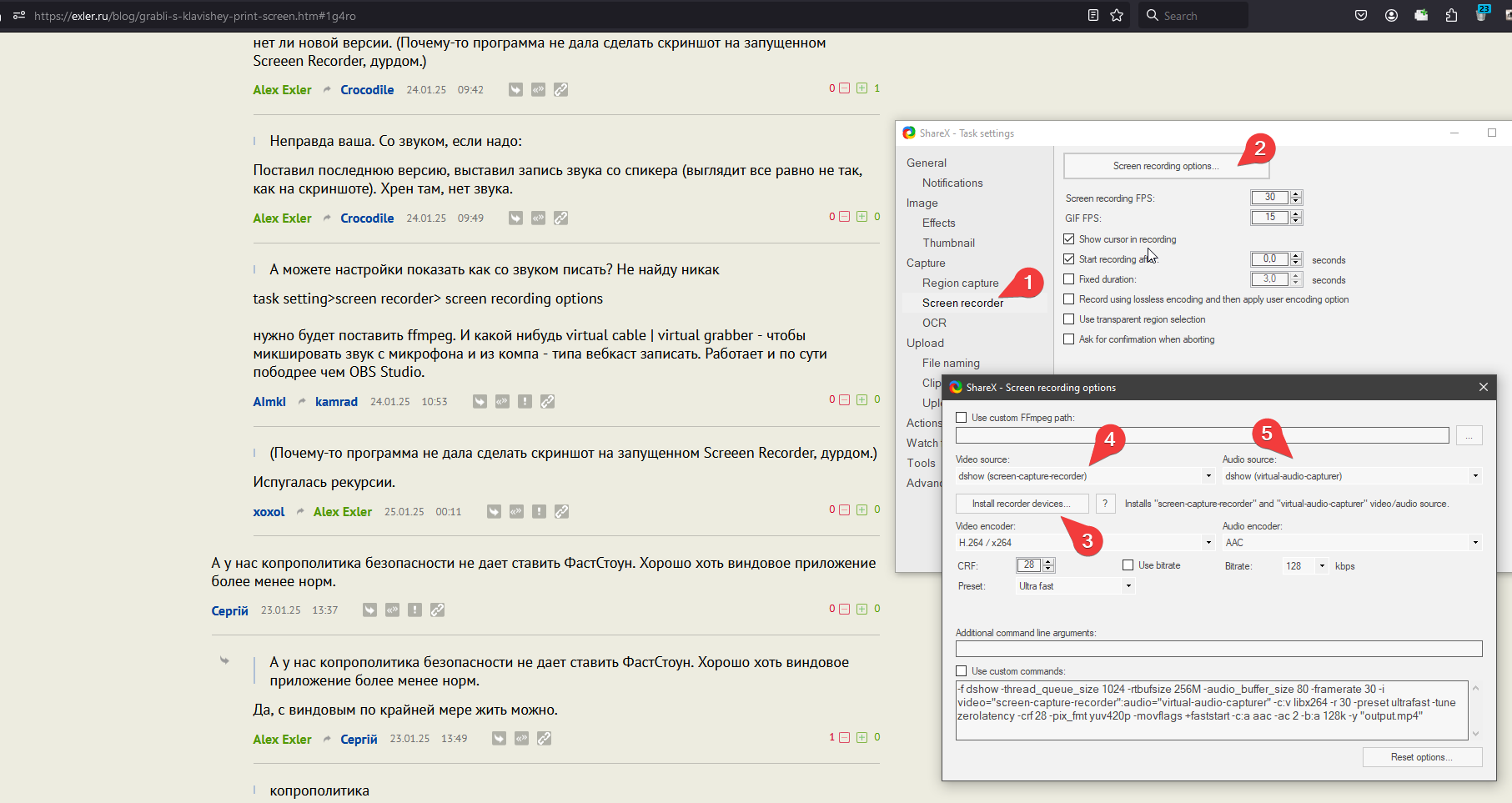 нужно будет поставить ffmpeg. И какой нибудь virtual cable | virtual grabber - чтобы микшировать звук с микрофона и из компа - типа вебкаст записать. Работает и по сути пободрее чем OBS Studio.