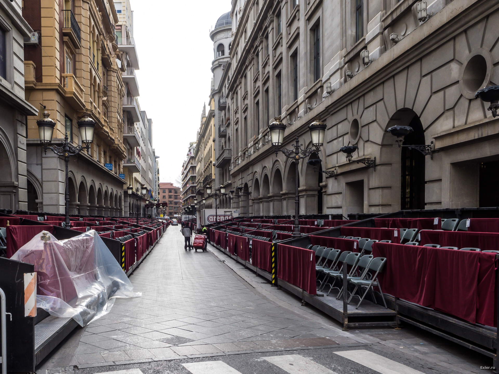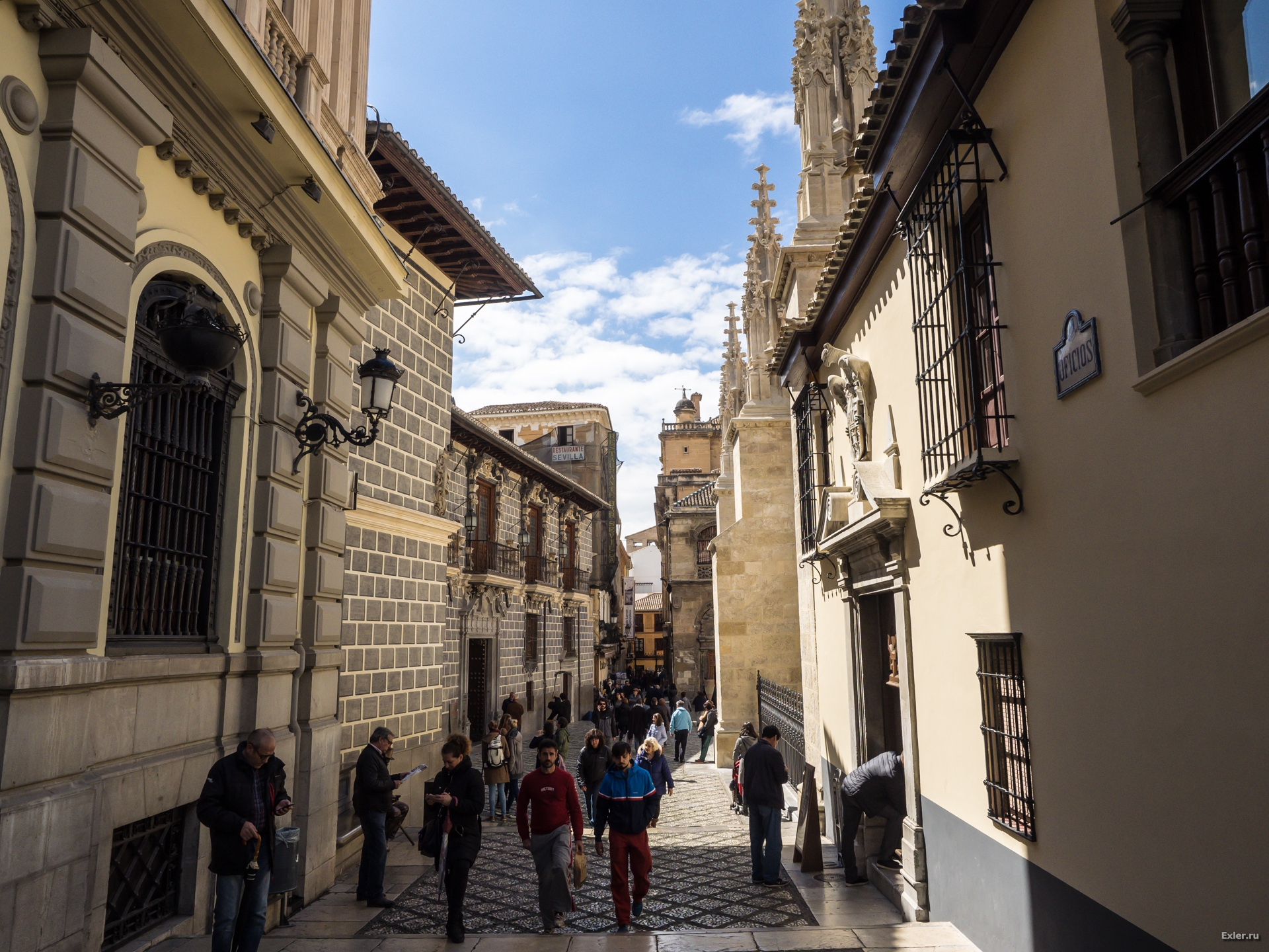 Улица, ведущая к Кафедральному собору Гранады. По ней идут все процессии Святой Недели, поэтому улица была перекрыта и там установлены стулья для зрителей.
