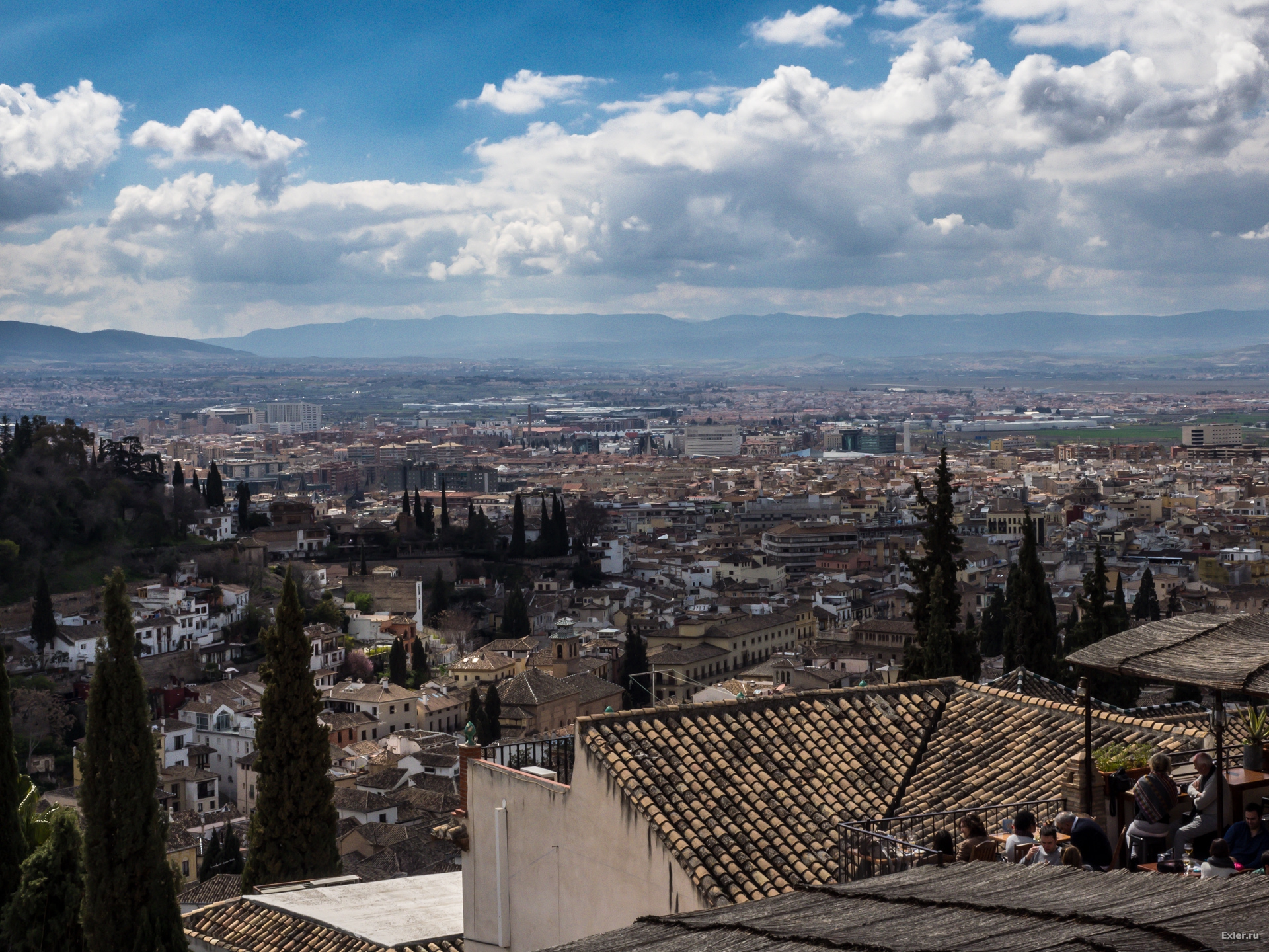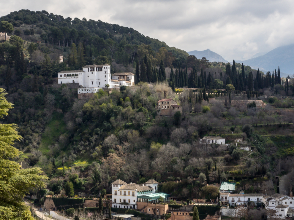 А это мы поднялись на самый верх района Альбайсин, где находится обзорная площадка, откуда открывается шикарный вид на Альгамбру - вот этот дворцовый комплекс.