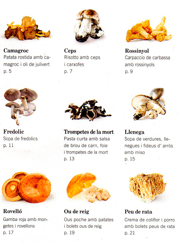 А именно в Каталонии грибам еще и любят давать очень поэтичные названия. Вот, например, вчера в одном специализированном магазинчике взял брошюрку с видами грибов и некоторыми рецептами.