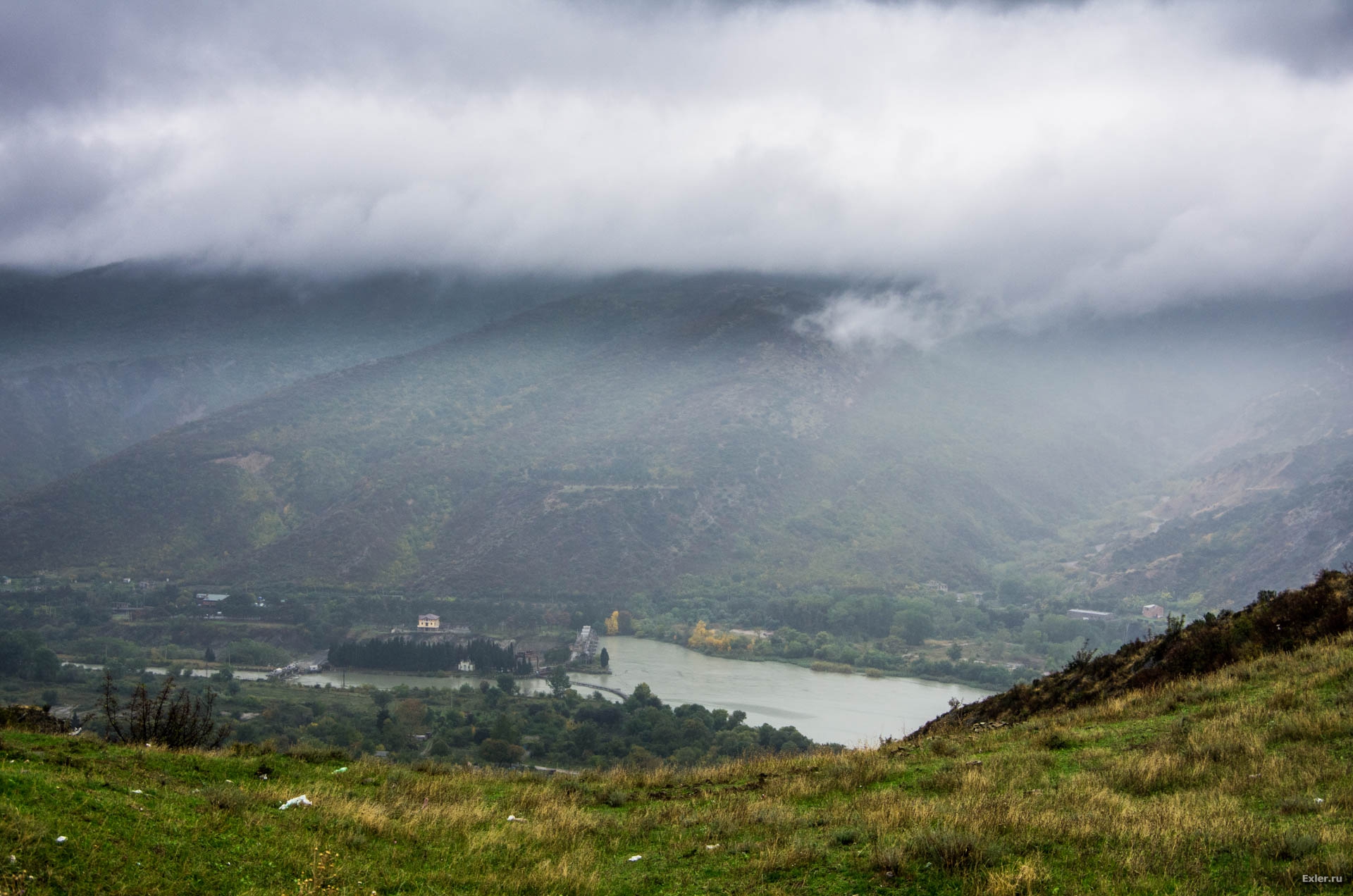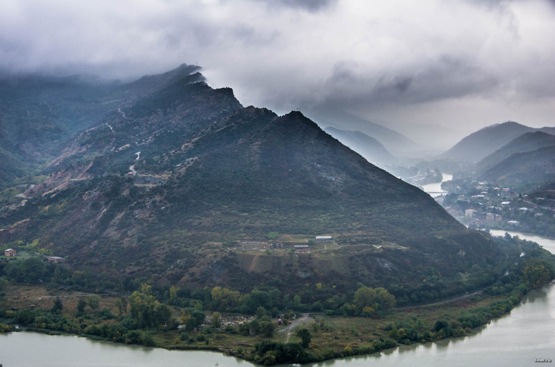 Сначала приехали к монастырю Джвари. Вид оттуда - вот такой (это фото уже обработано, в оригинале там вообще почти ни черта не было видно).