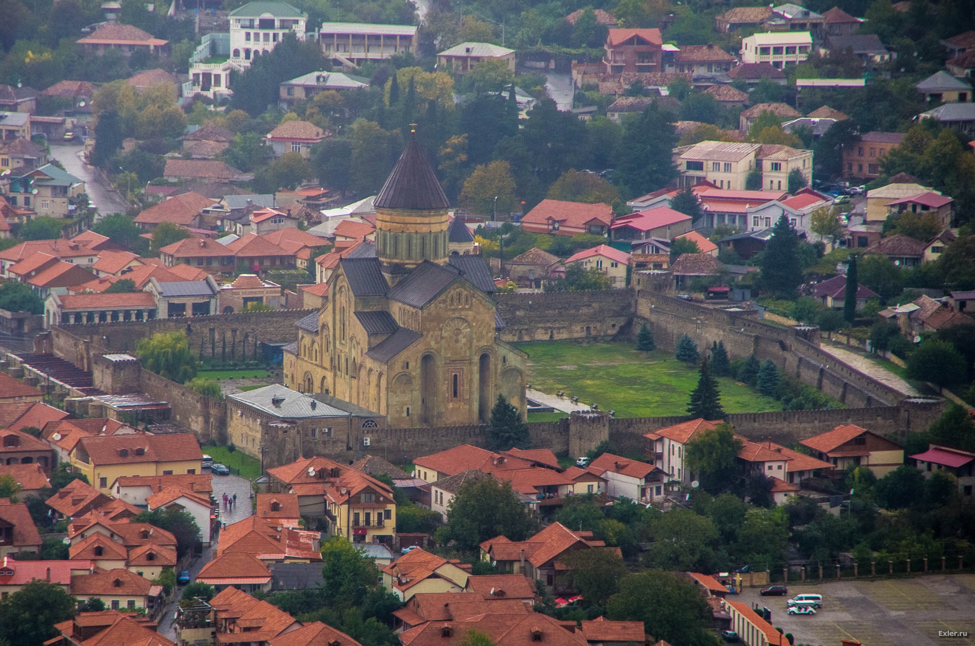 Вот тут хорошо виден главный грузинский собор (и до недавнего времени - самый большой) - Светицховели (животворный столп). Мы к нему еще спустимся.
