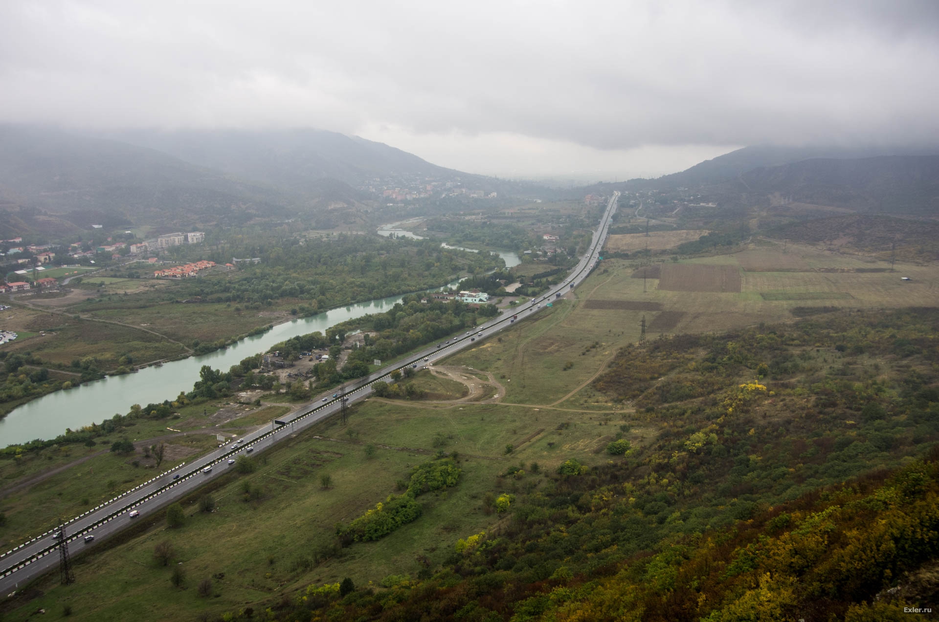 А это та самая Военно-Грузинская дорога. За холмом справа во время военных действий 2008 года остановились российские войска. До Тбилиси отсюда - порядка 20 километров.