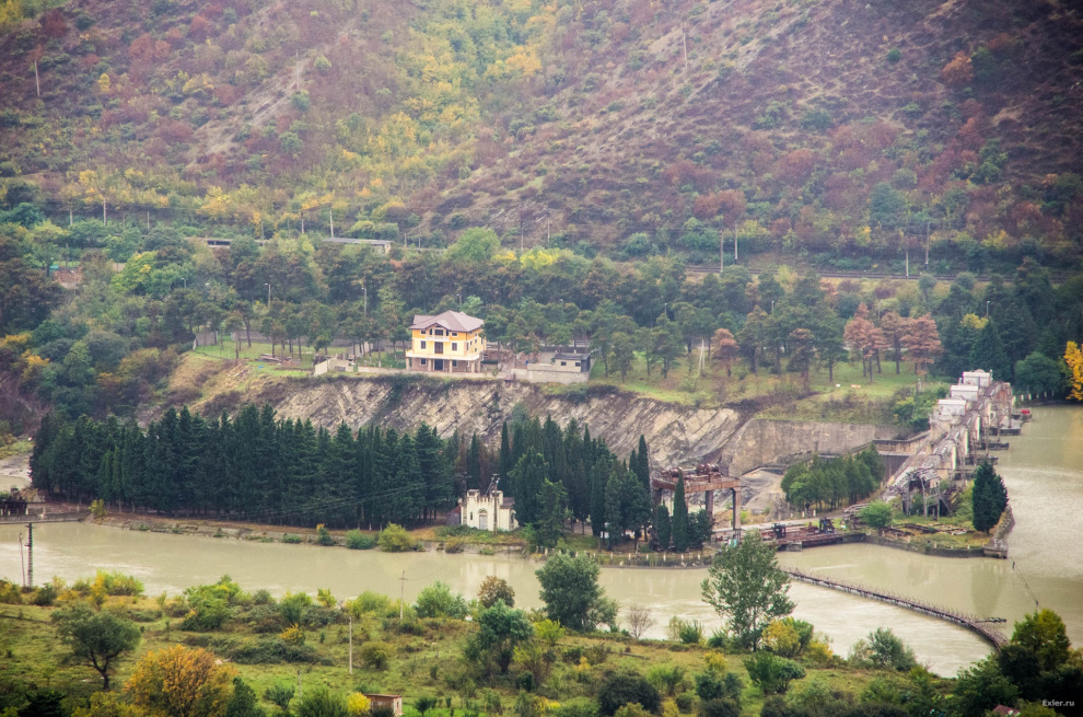 Вот тут видна плотина на реке Куре, регулирующая уровень воды. Отсюда отводится вода для авчальской гидроэлектростанции.