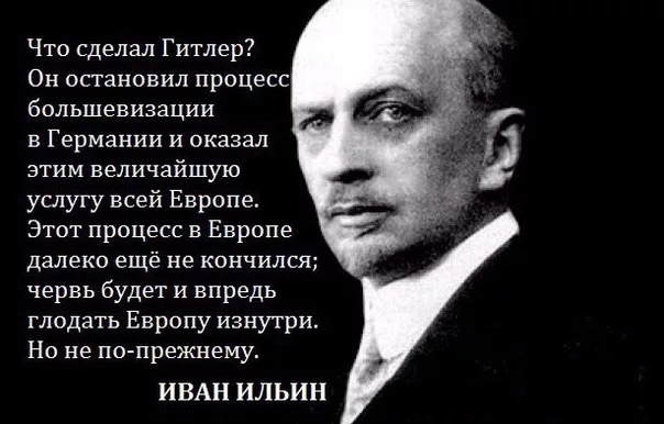 Иван Ильин — философ-эмигрант и профессор Берлинского русского научного института (1923-1934), который при правлении НСДАП финансировало Рейхсминистерство пропаганды Йозефа Геббельса. В 1933 году Ильин составлял антикоммунистические донесения для тайной полиции Германии, а также приветствовал захват власти Адольфом Гитлером в статье «Национал-социализм. Новый дух».