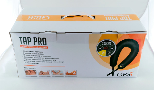 Второй массажер, который они прислали, совершенно другого типа. Это, говоря официальным языком, ударно-кулачковая массажная накидка для шеи и плеч Tap Pro.