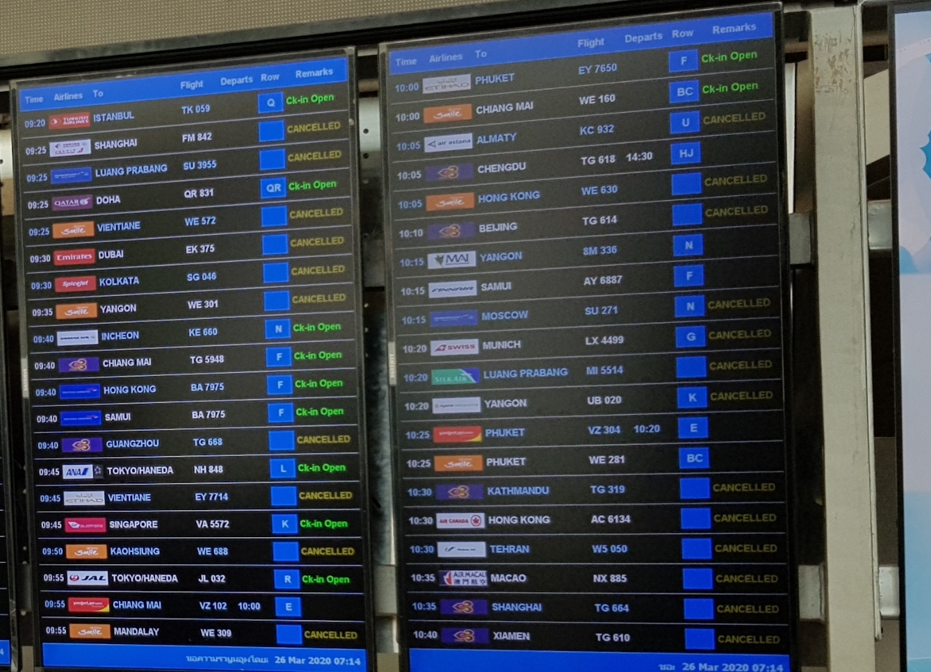 Вот и мы домой попадаем из поездки, которая начиналась еще осенью. На табло, кстати, отмененный рейс Аэрофлота, на который изначально были наши билеты. Мы ночью ехали Самуи-Бангаок, а рядом ехали люди Самуи-Паттайя, потому что улетать прямо сейчас слишком дорого