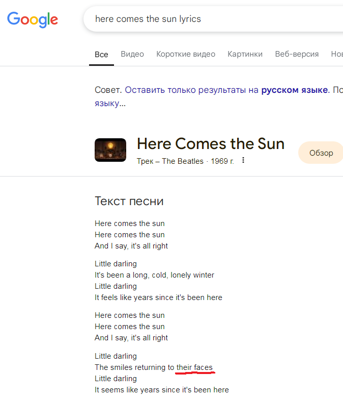А вот то, что они поют "their", а не "the" (это я уже позже полюбопытствовал и нагуглил), я при всём желании не смог бы различить. Это насколько же натренированным надо быть для того, чтобы уловить!