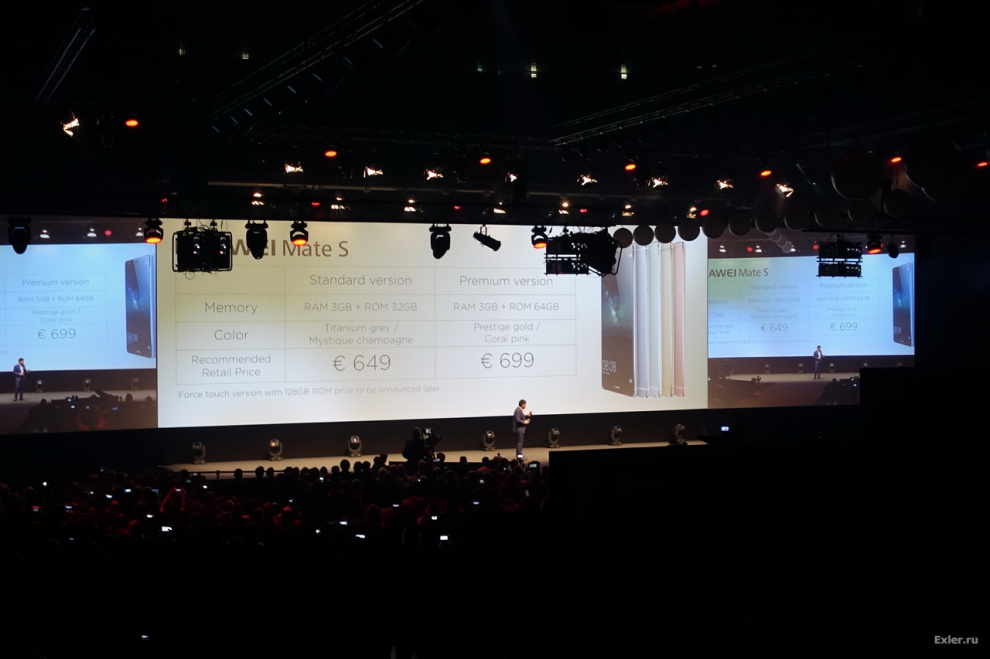 После этого перестали тянуть кота за хвост и к публике вышел CEO Ричард Ю, который представил нового флагмана компании - смартфон Huawei Mate S. В прошлом году он представлял Huawei Ascend Mate 7, и это была просто бомба! Смартфон получился исключительно удачный и портила его только камера, которая, конечно, значительно уступала камерам, например, Samsung Galaxy Note 4 и LG G3.
