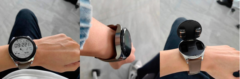 В преддверии скорой презентации HUAWEI в сети появились качественные фотографии смарт-часов Watch Buds. Напомним, что ключевой фишкой этой модели станут встроенные беспроводные наушники — другими словами, это два устройства в одном.