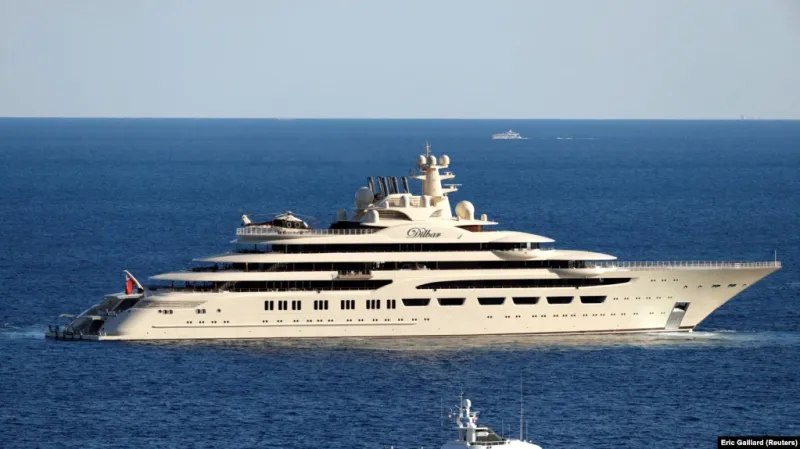 Именно на яхте Dilbar Усманов записывал видеообращения к Алексею Навальному. По данным Forbes, это самая вместительная яхта в мире, там есть бассейн, две вертолетные площадки, сауна, салон красоты и тренажерный зал. (Отсюда.)