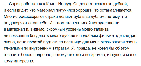 Какой оригинальный подход у этого Иствуда) А остальные до сих пор не смонтировали ни одного фильма, все дубли снимают.