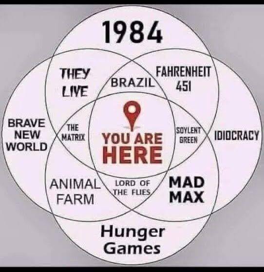 А, и ещё! Картинка явно создавалась иностранцем. Отсутствие русской литературы вполне объяснимо. Но вообще странно, что вы первым делом не упомянули "Мы" Замятина. Тот же Оруэлл признавал, что эта книга его вдохновила.