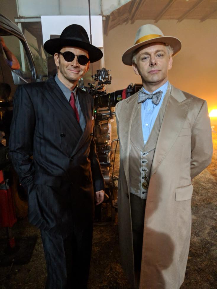 Дэвид Теннант и Майкл Шин на съёмках второго сезона "Good Omens" ("Благих знамений"). Пишут, что это по неизданному роману Нила Геймана. Будем надеяться, что планку не уронят, первый сезон был просто отличный.