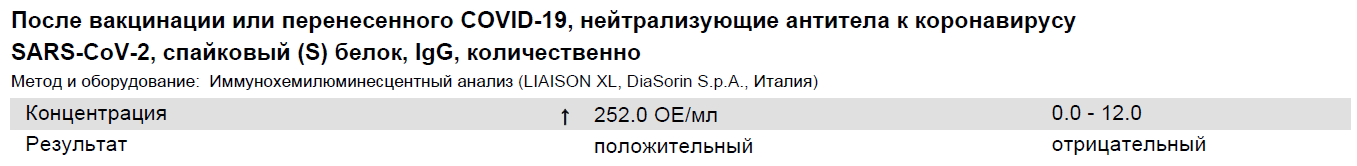 А вот по конкретно числам - ответа, на данный момент нет. Количество антител необходимых для защиты неизвестно ни в каком виде теста. Собственно как и достоверной оценки клеточного иммунитета. Может оказаться, что эти параметры впрямую защиту не характеризуют и есть другие маркеры. Единственно, что можно сказать, что уровень в несколько сотен (по нашему стандартному LIAISON XL, DiaSorin S.p.A., Италия) означает, что иммунитет есть и включится сразу при попадании вируса в организм. Вот насколько справится уже зависит от многих факторов и всех пока не знают.