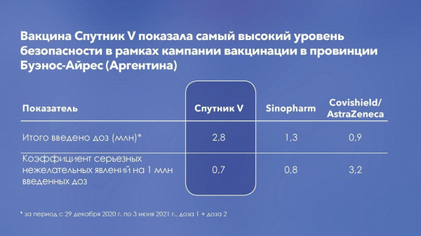 Об этом сообщило Министерство здравоохранения провинции Буэнос-Айрес, отметив полное отсутствие смертельных случаев, связанных с использованием российского препарата.