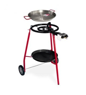 Купил я себе 50-сантиметровую паэльеру с соответствующей газовой горелкой. Оно, конечно, по классике надо готовить на дровах из апельсинового дерева, но у меня нет достаточного опыта регулирования температуры при готовке на дровах/углях, поэтому двухзонная газовая горелка - самое то что надо!