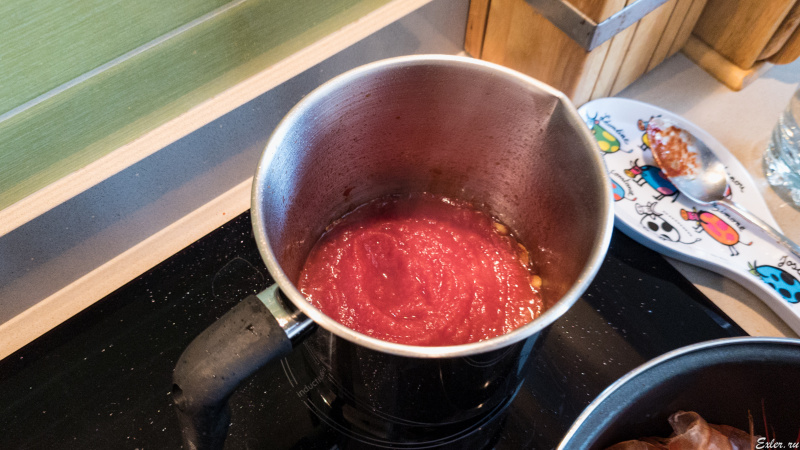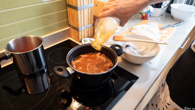 И в этом описании показан соус из томатов с чесноком, а также рыбный бульон, который является составной частью соуса.