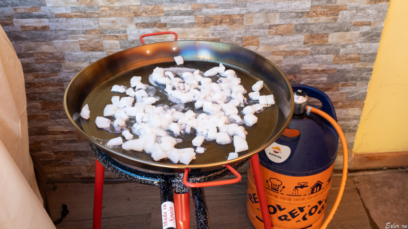 В этот раз мы делали паэлью с морепродуктами по рецепту Влада.