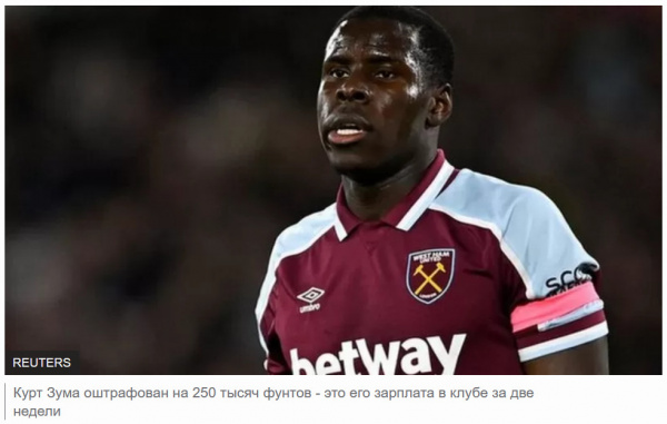 Ассоциация болельщиков клуба "Вест Хэм" заявила, что осуждает действия Зумы и полагает, что футболиста следовало бы отстранить от матчей на все время дисциплинарного разбирательства.
