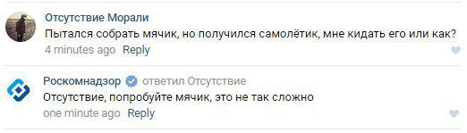 РКН не придумал ничего лучше, как спионерить у Дурова идею запускать из окна бумажные самолётики. Но они даже спионерить нормально не могут: предложили пользователям выбрасывать из окна "бумажные мячики" и при этом опубликовали 20-минутное видео о том, как это мячик нужно собирать! Двадцатиминутное, Карл! А собирать этот мячик, я так думаю, минут сорок - после того, конечно, как вы посмотрите 20-минутное видео.