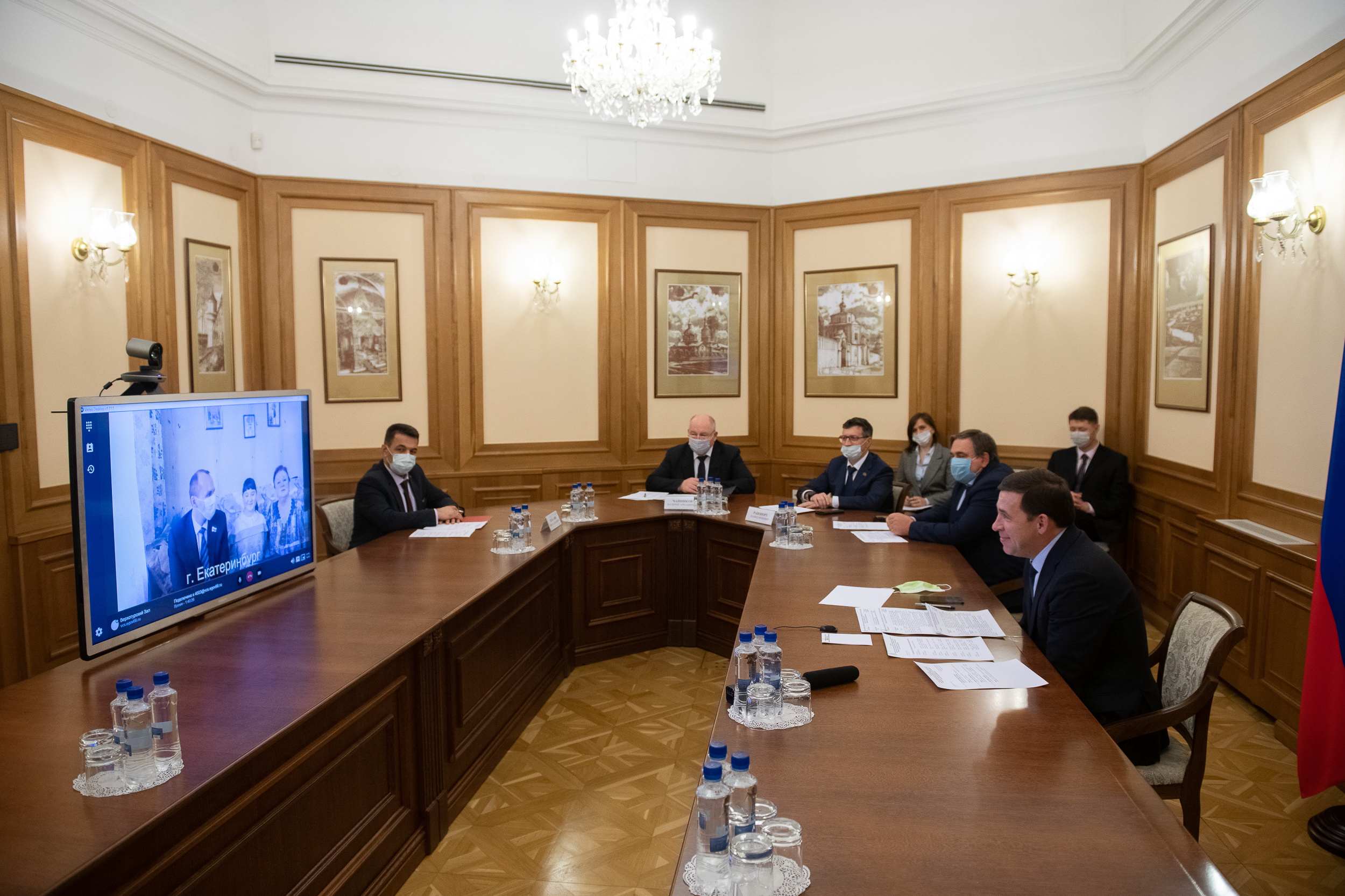 Губернатор и главный единоросс Свердловской области Евгений Куйвашев тоже без маски. Новость отсюда