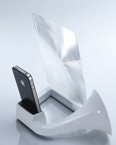 Вот, например, хотите вы посмотреть фильм на айфоне, причем с друзьями? Нет проблем! Подключаете к нему громкоговоритель, ставите перед айфоном специальную линзу и - вперед, назад в CCCР!