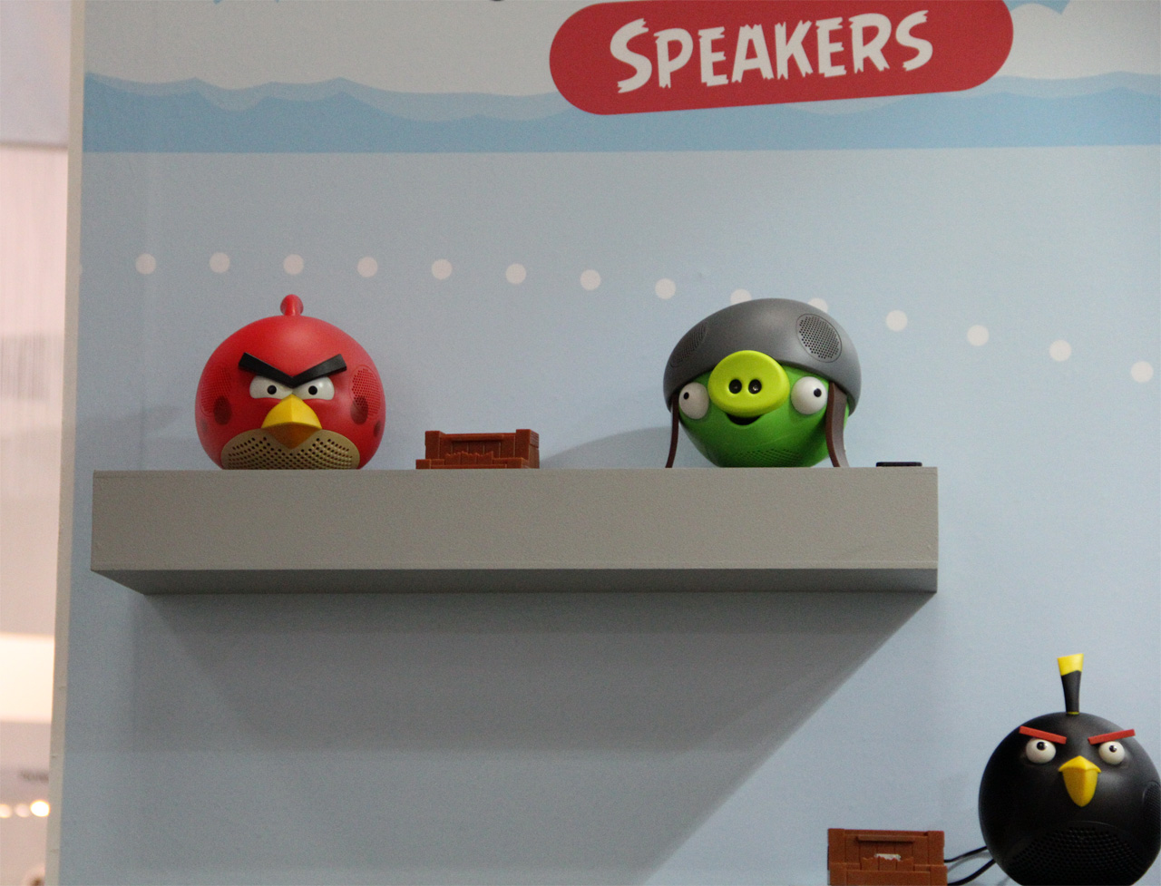 Энгрибердсомания шагает по планете. На выставке показывали целый набор колонок в форме главных героев игры Angry Birds.