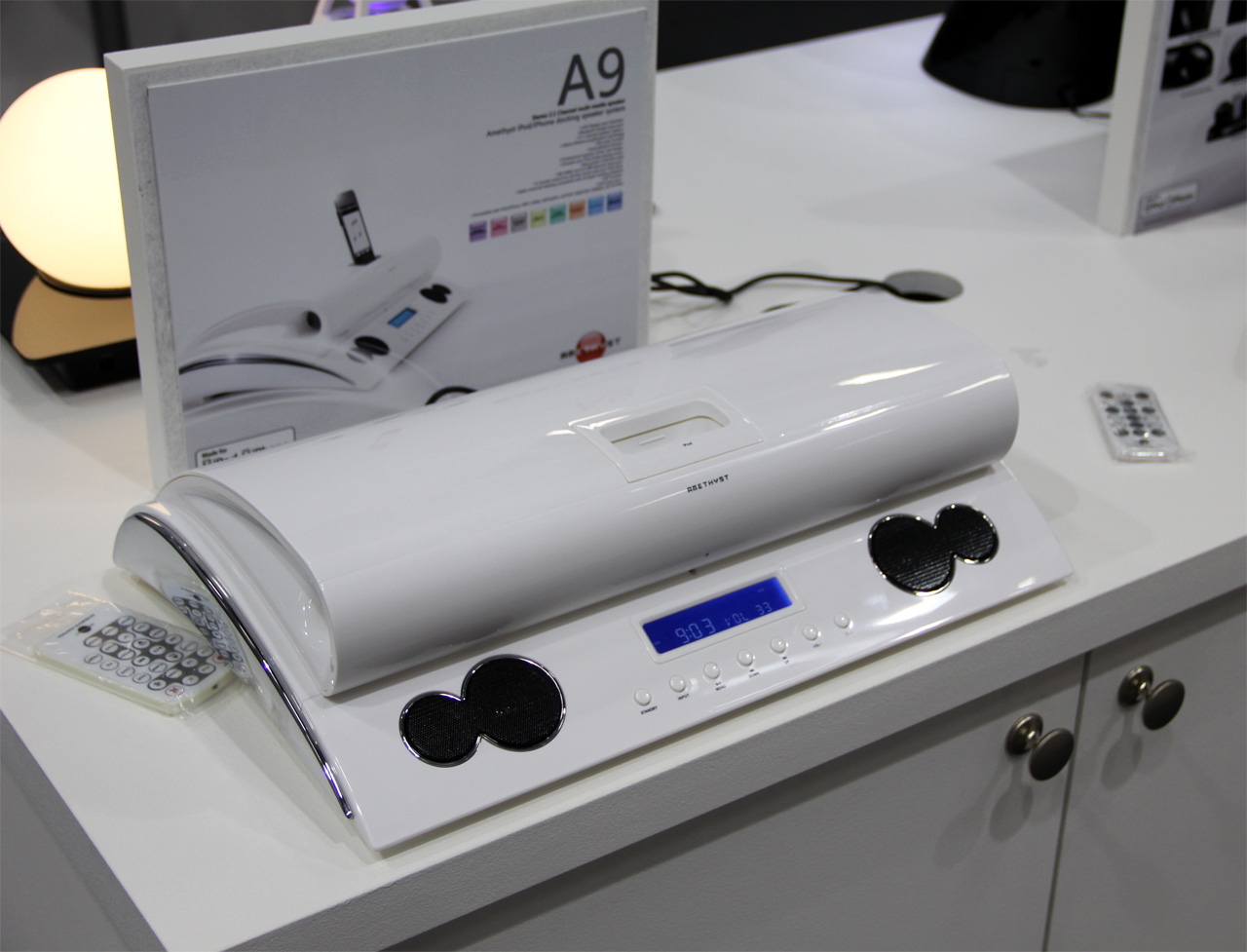 Yamaha показала вот такой интересный док для iPad'а. Вообще док-станций для айфонов-айпадов на выставке было дикое количество. Я сначала хотел их собрать в один пост, но потом подумал, что лучше не концентрировать это дело. Буду вкраплять в другие гаджеты.