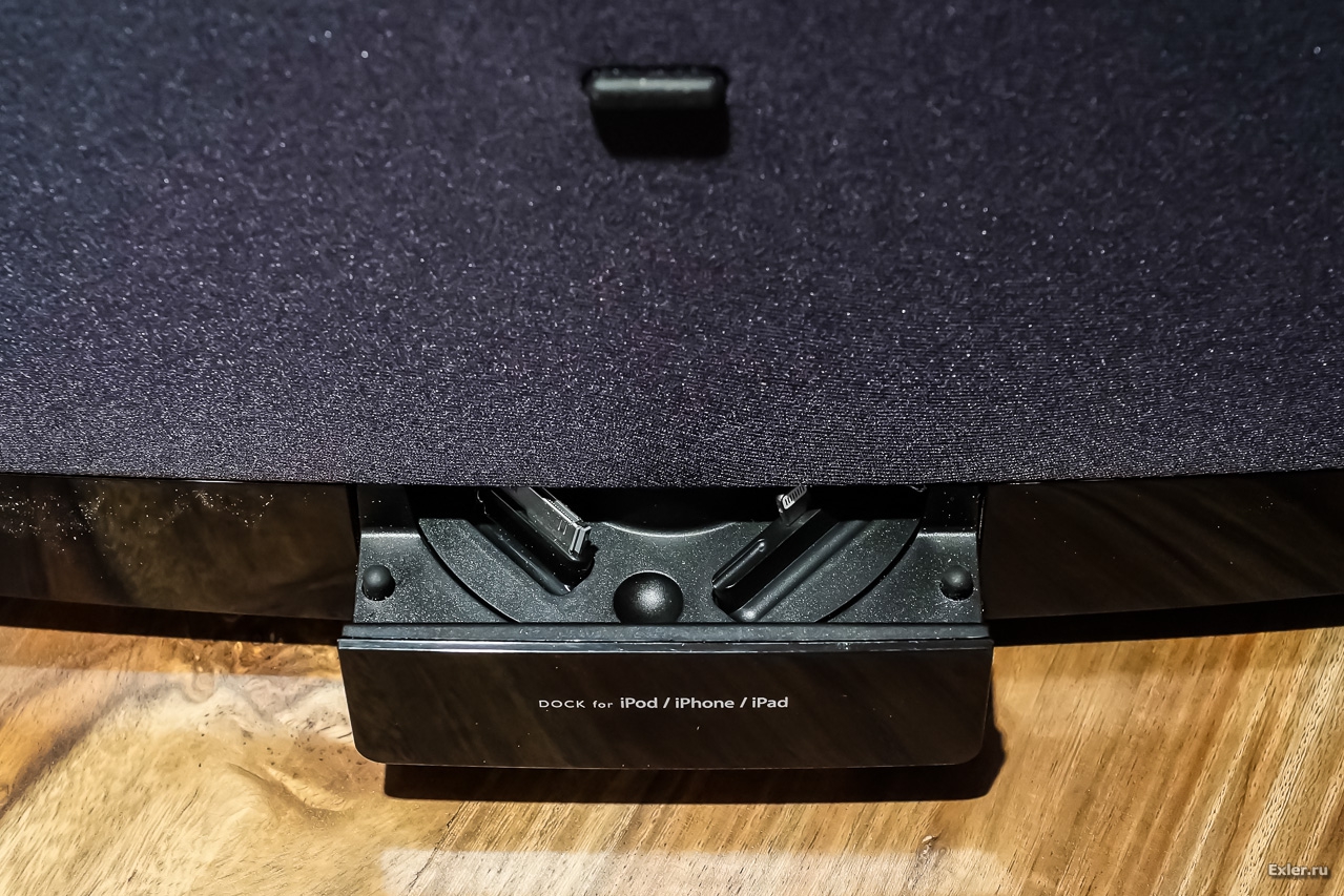 Показали несколько колонок с доком под айфон. У них уже сделаны два вида контактов: под старый и под новый. Чтобы переключить - нужно просто сдвинуть пальцем посадочную панельку.