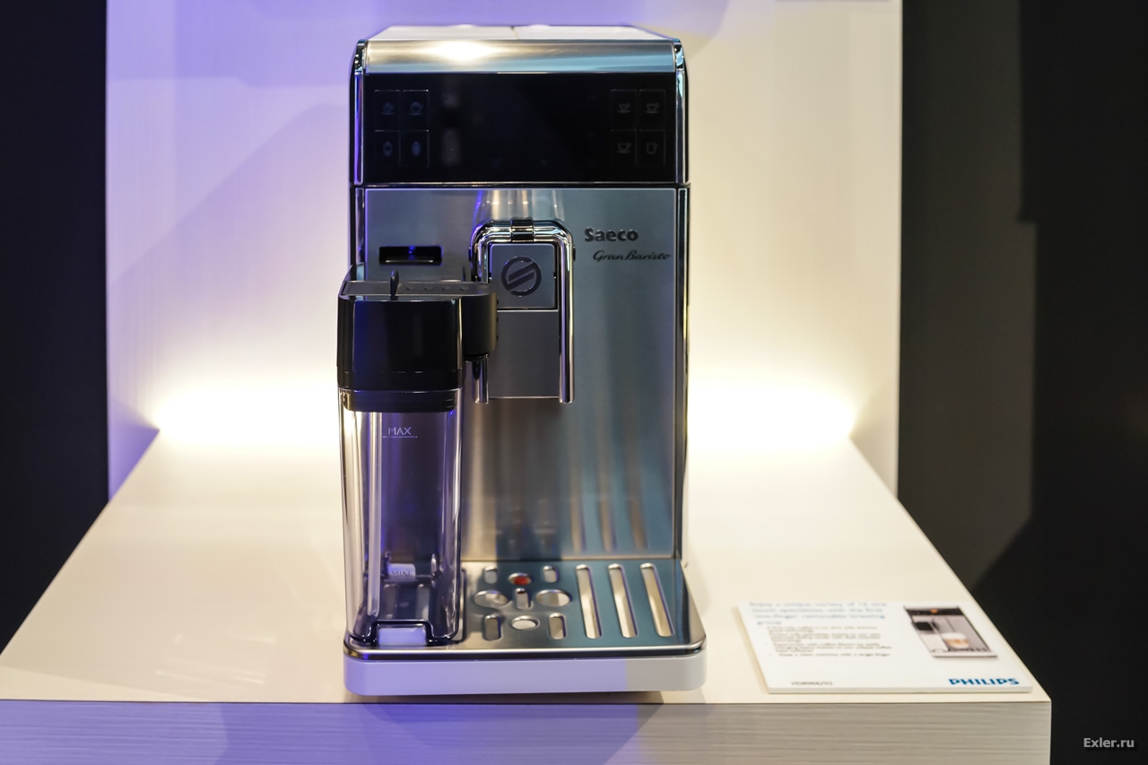 Из бытовой техники Pieter Nota, CEO компании, представил четыре бытовых устройства, в каждое из которых они засунули Wi-Fi и NFC: HomeCooker, кофемашину GranBaristo Avanti, Avent SmartBaby Monitor, Grooming Guide (это просто программа для айпэда) и Smart Air Purifier.