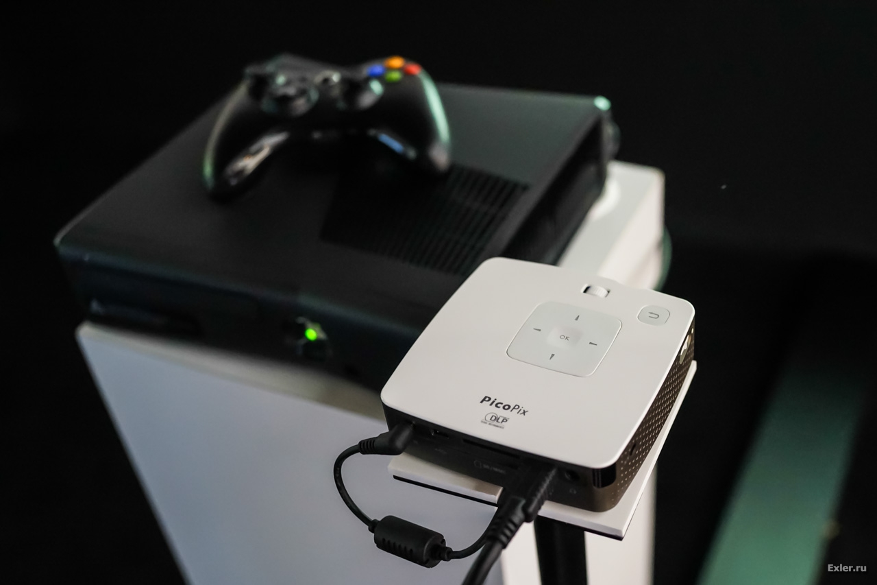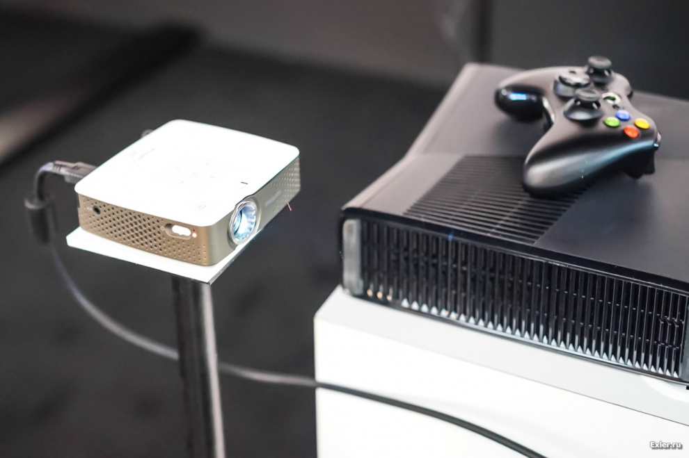 Вот эта штука очень понравилась: миниатюрнейший проектор PicaPix, выдающий однако вполне пристойную картинку. Яркость 100 люмен, в нем есть встроенный медиаплеер и память на 4 Гб.