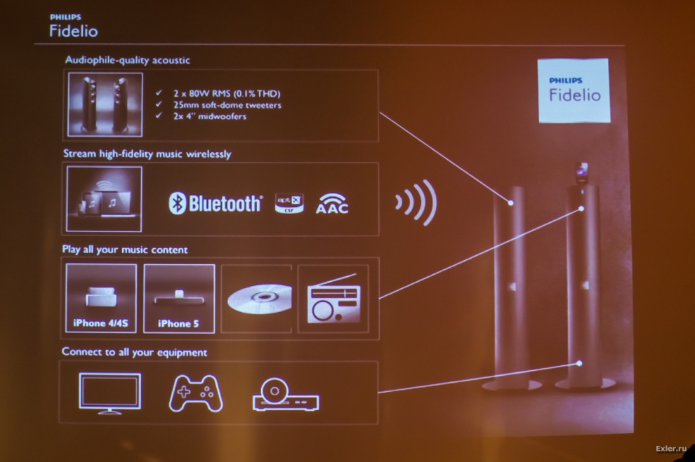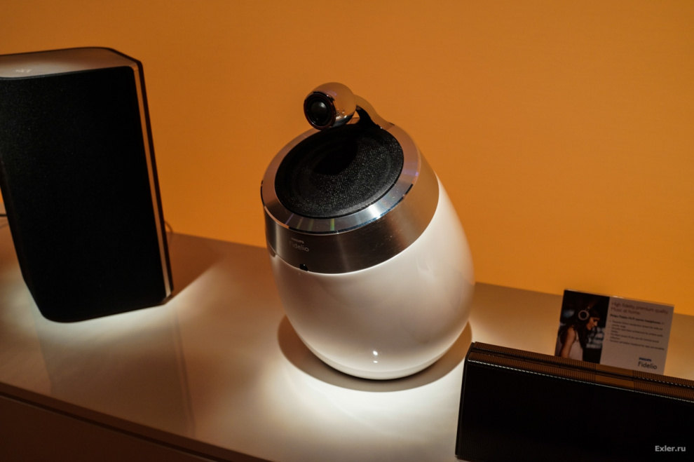 Разумеется, представляли также свои новые разработки аудиоустройств Fidelio - это всякие колоночки со стильным дизайном, а также наушники. Мы их чуть позже посмотрим - у нас был воркшоп по ним.