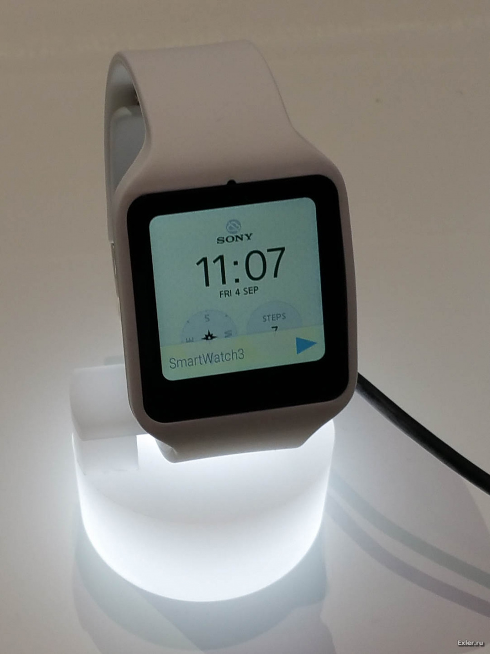 Третья модель "умных" часов от Сони. Прямоугольные, пластиковые, на Android Wear.