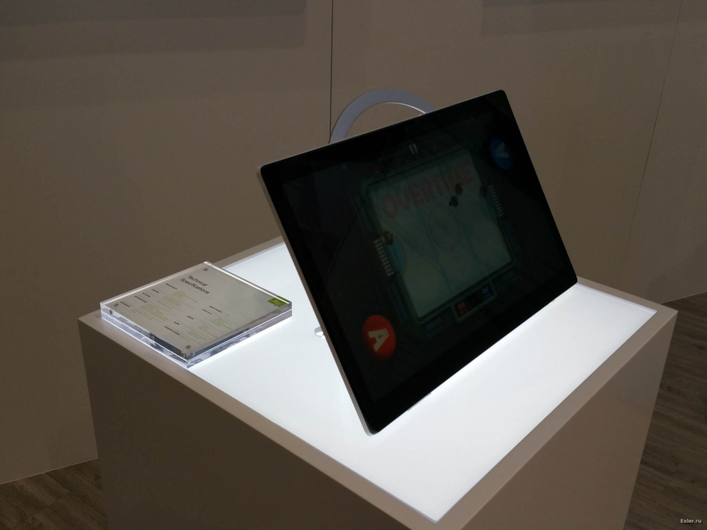 На стенде Alcatel продемонстрировали монстрообразный настольный планшет Alcatel Onetouch Xess с дисплеем в 17,3 дюйма. На Андроиде. Разрешение FullHD.