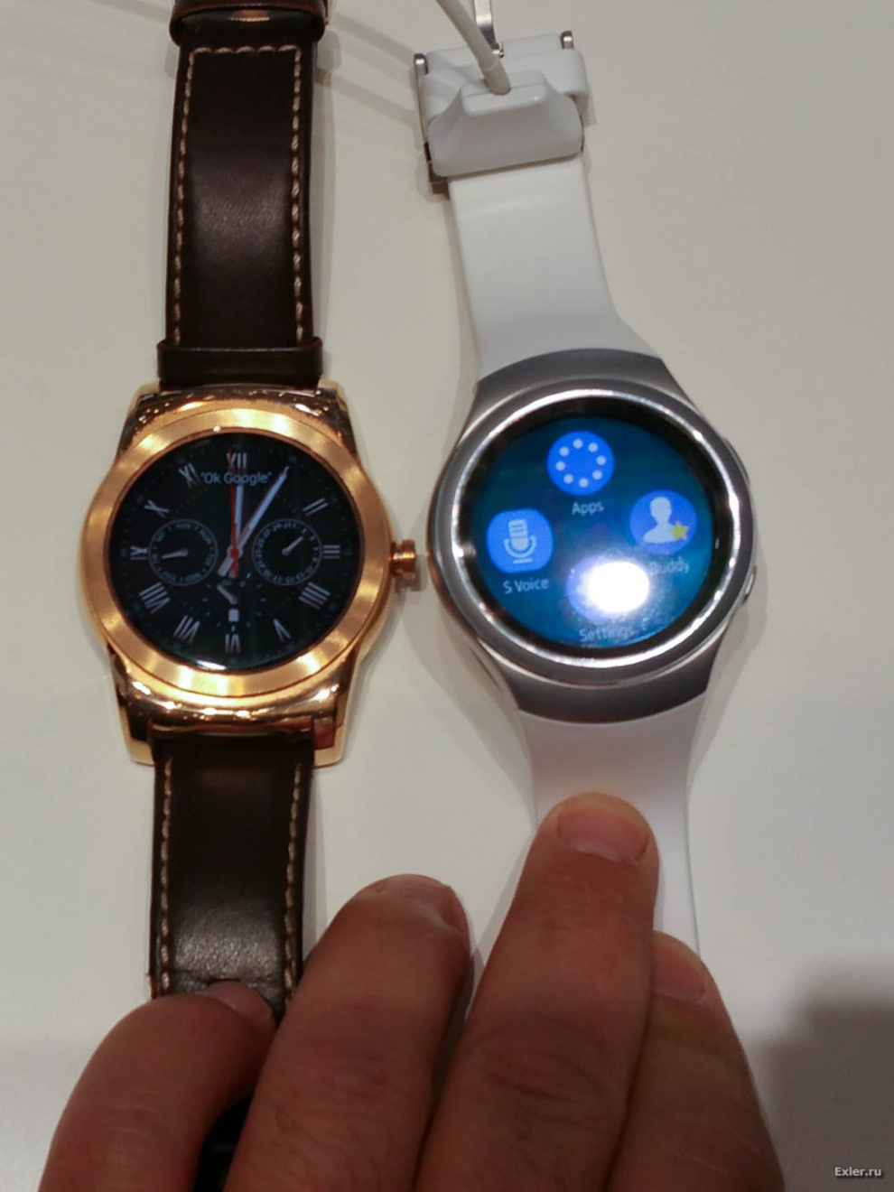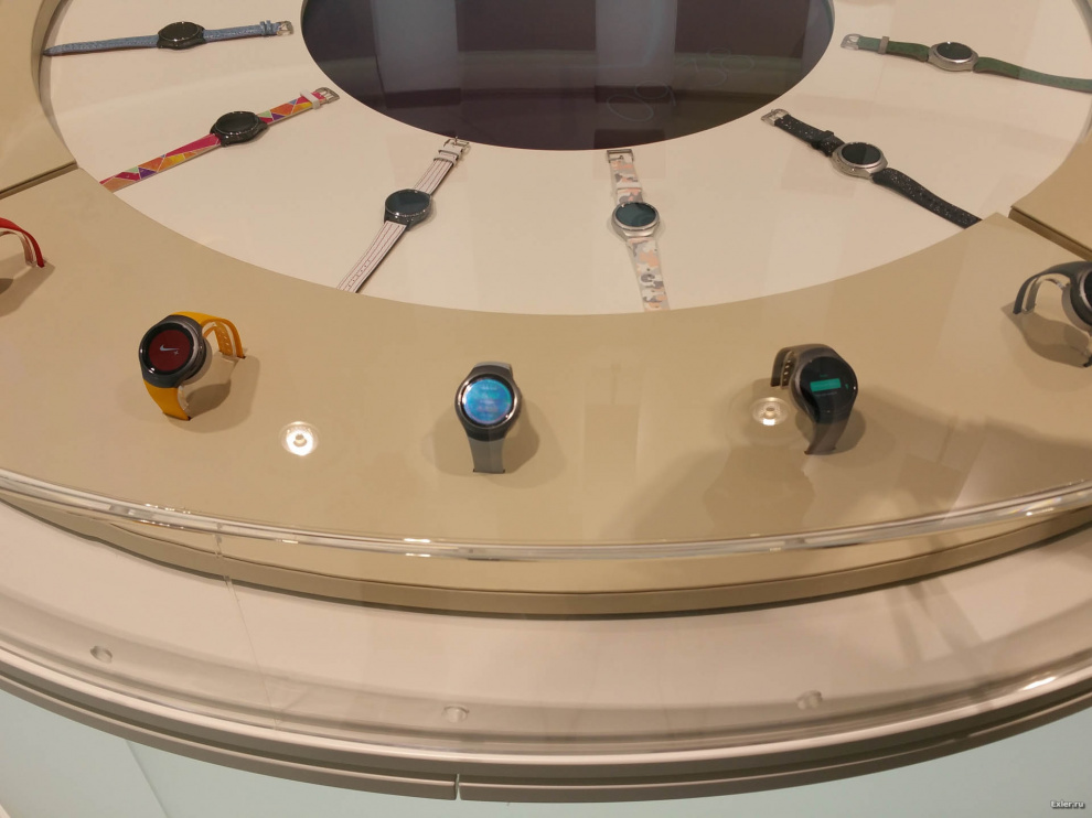 Один из "гвоздей" программы - новое поколение "умных" часов от Samsung - Gear S2. Представлены сразу во всевозможных видах.