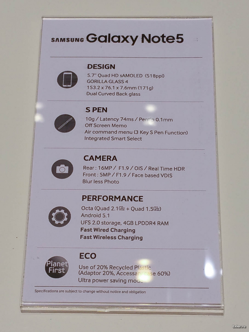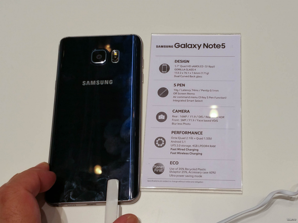 Ну и следующий флагман - Samsung Galaxy Note 5. Меня эта модель очень интересовала, потому что Note 4 я на данный момент считаю лучшим смартфоном на рынке - по моим предпочтениям, разумеется.