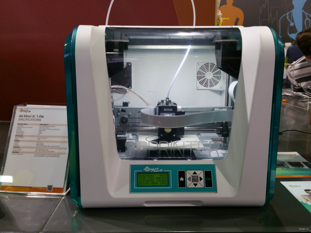 Стенд с 3D-принтерами. Любопытная штука. Только пока очень медленная.