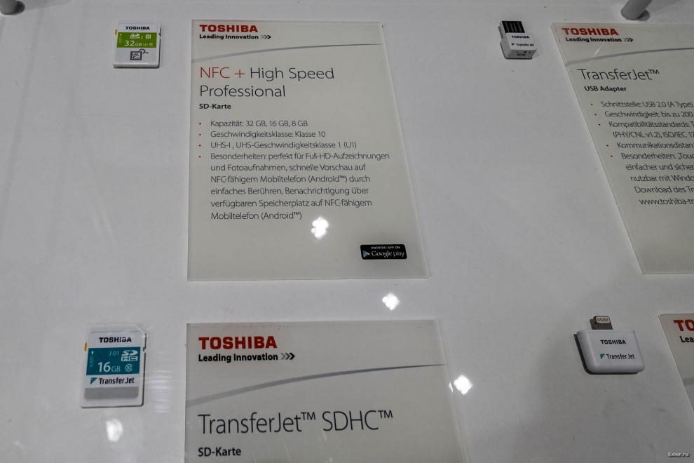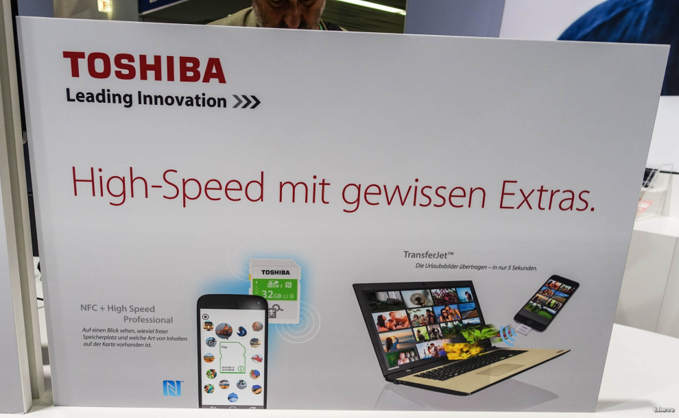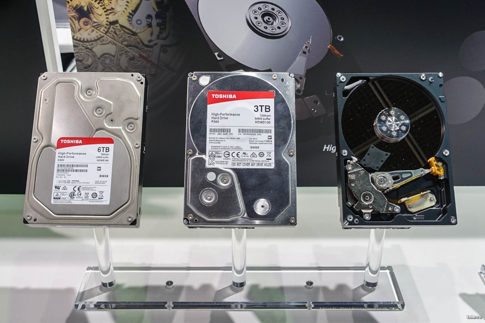 Стенд Toshiba. Показали 6-терабайтный диск 7200 rpm с кешем 128 Мб.