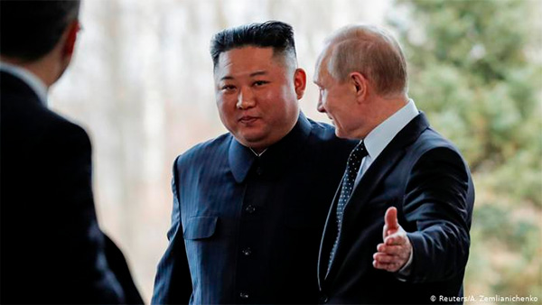 Перед началом  встречи с Ким Чен Ыном  Путин выразил надежду на то, что она "послужит делу развития двусторонних отношений" Москвы и Пхеньяна. "Нам очень многое нужно сделать для развития торгово-экономических связей, развития гуманитарных контактов", - подчеркнул он, добавив, что ему "очень приятно видеть" северокорейского коллегу в России. Кроме того Путин поздравил Ким Чен Ына с избранием на должность главы КНДР. "Я направлял вам соответствующее письмо, но сейчас с удовольствием поздравляю вас с этим лично", - отметил он. Руководитель КНДР также поздравил Путина с переизбранием на пост президента РФ в 2018 году. (Отсюда.)
