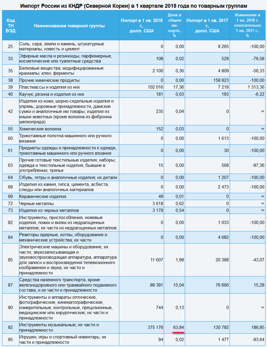 64% импорта - баяны и аккордеоны. Играй, корейская гармонь, играй! Еще 17% - пластмассовые тазики. Конкурируют, понимаешь, с мадам Батуриной, портят ей рынок.