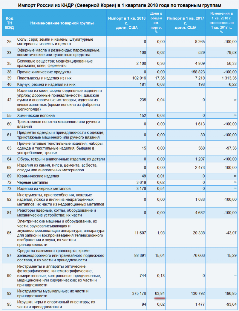 Ну и по поводу "многое нужно сделать для развития торгово-экономических связей" - чо там Россия-то из Северной Кореи получает? Смотрим.