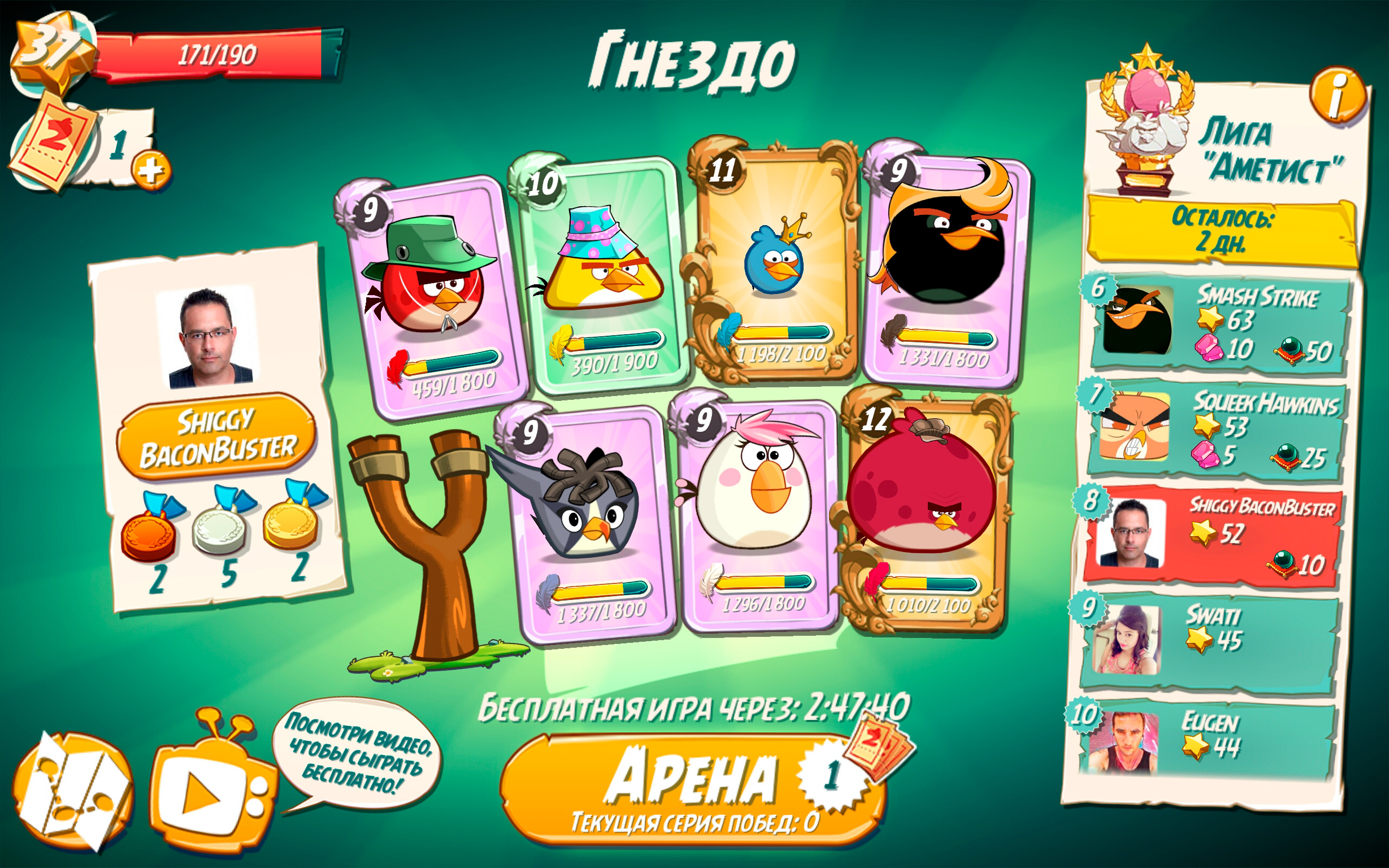 Кстати, меня всегда интересовало, откуда эта игра берет реальные фотографии для "Арены", где ты якобы сражаешься с другими игроками, хотя на самом деле, разумеется, это все фейки, а ты играешь с компьютером (и это очень легко проверить и доказать). Потому что иконки игрока "Angry Birds" менять не дает. А там явно появляются фото реальных людей.