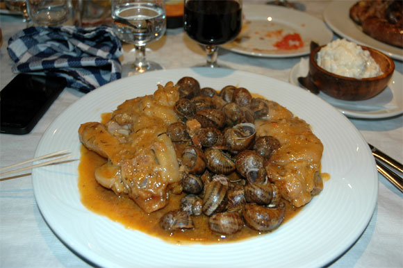 В качестве главного блюда я взял свои любимые улитки, которые они тут готовят очень своеобразно: со свиными ножками. Ножки при этом можно не есть (а можно и есть - тоже очень вкусные), они нужны только для придания улиткам соответствующей кондиции.