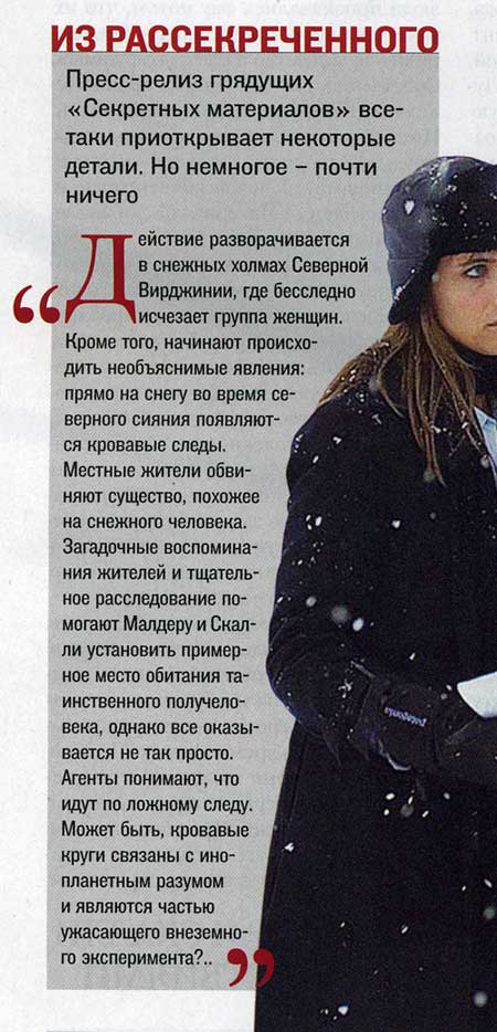В "Русском Newsweek" в статье Юрия Гладильщикова о фильме "Секретные материалы: ай вонт ту белив" есть врезка с официальным, как там написано, пресс-релизом. Цитирую.