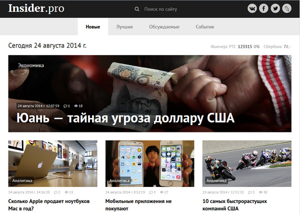 Insider.pro - новое онлайн-издание, которое рассказывает об экономике и финансах просто и увлекательно. Причем там рассматриваются новости со всего мира. Однако в издании - не только новости. Аналитика, трейдинг, экономика, стратегия, инфографика, криптовалюты, персоналии, ну и один из самых популярных разделов - стиль жизни.
