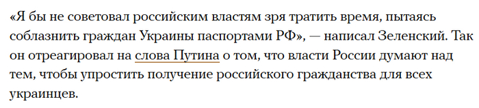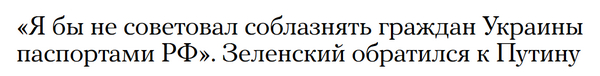 В словах Зеленского подтекст, что украинцам паспорт РФ нафиг не нужен .