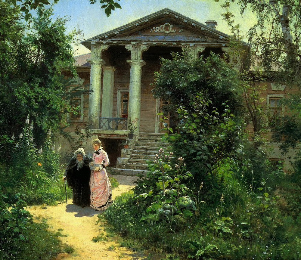 Не знаю как у Васнецова, если сдвинуться правее из поленовского «Бабушкиного сада», то мы попадаем в поленовский же «Московский дворик».